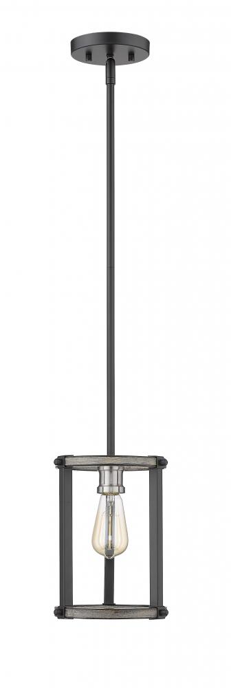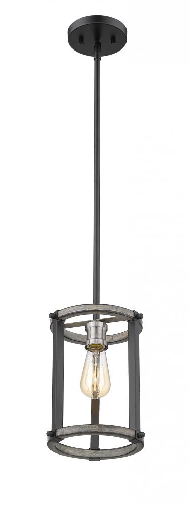 Great for a living room or bedroom, this one-light mini pendant is full of industrial charm. Constructed of faux barnwood, the open frame highlights an exposed lightbulb and sleek ashen tones.