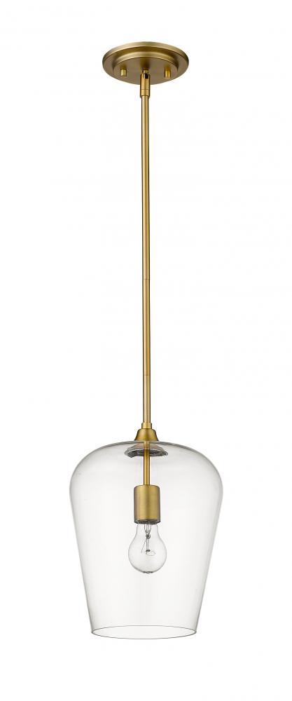 Designed with modern elegance in mind, this olde brass pendant is a stunning home decor upgrade. A single light beneath a clear glass shade is suspended from a sleek metal frame to create a magnificent display of light.