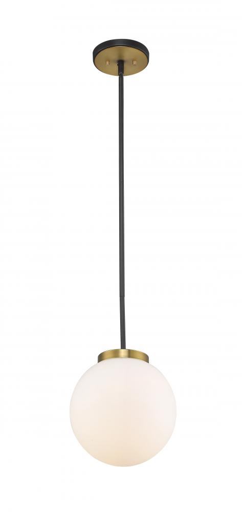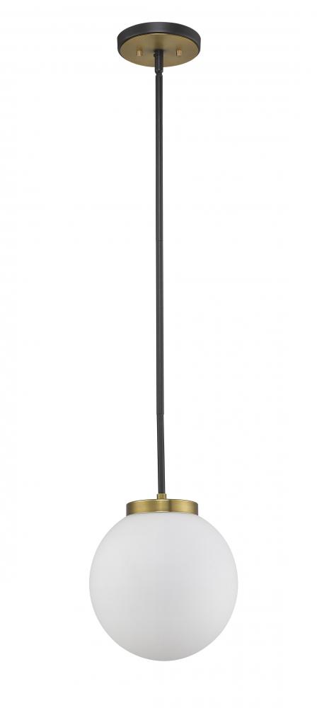 Clean, crisp lines and a slender design are the hallmarks of this one-light pendant for your home. Its fashioned with a matte black and olde brass finish and a round opal shade for the warm glow youre looking for. This elegant light is perfect for the dining room, foyer, bedroom, or home office.