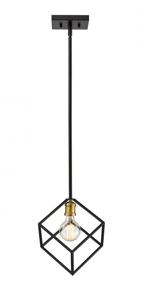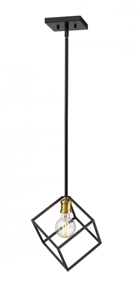Crisp lines and a modern edge highlight the vibe of this two-tone one-light pendant for your home. Its fashioned with a bronze and olde brass finish with a cube-shaped shade for a design thats dynamic and timeless. Its a vibrant light that will be a showpiece in any dining room, foyer, bedroom, or home office.