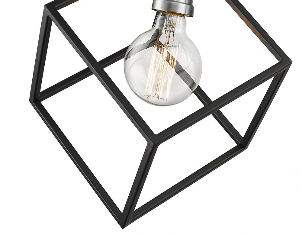 Crisp lines and a modern edge highlight the vibe of this two-tone one-light pendant for your home. Its fashioned with a matte black and brushed nickel finish with a cube-shaped shade for a design thats dynamic and timeless. Its a vibrant light that will be a showpiece in any dining room, foyer, bedroom, or home office.