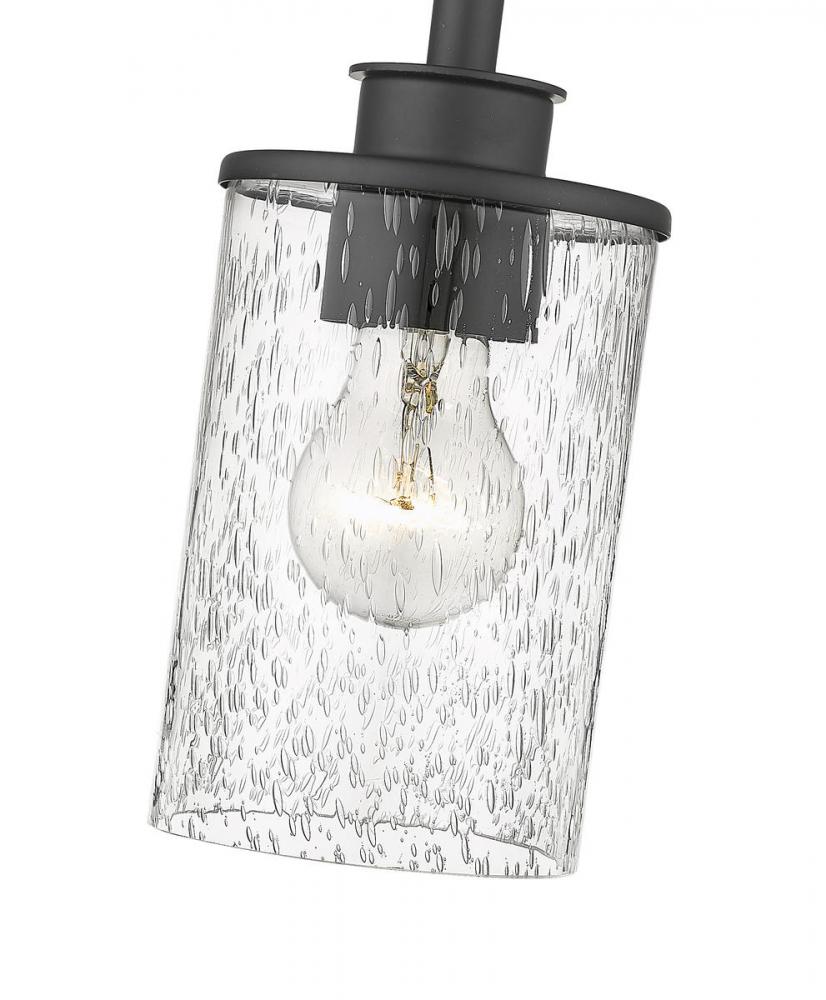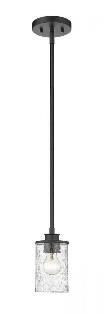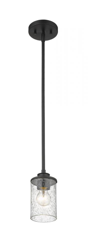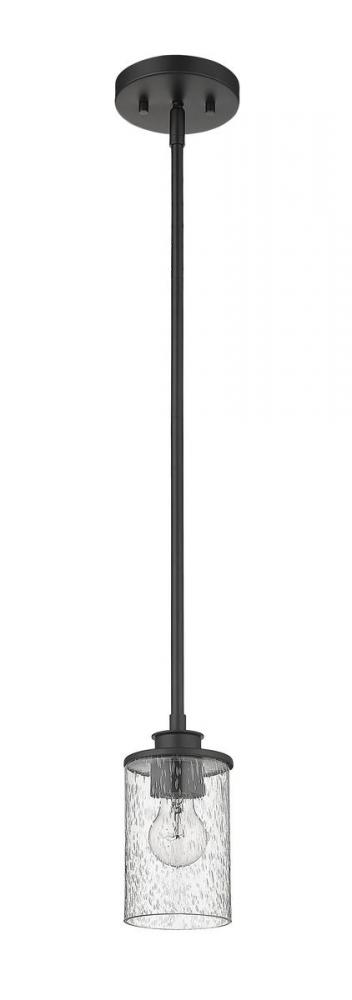 An air of simplicity creates sophistication and style in a modern or transitional space when this one-light mini-pendant shows off its classic elegance. This mini-pendant from the Beckett collection reflects a hint of nautical influence, blending a matte black finish steel mount and down rod with a single cylindrical clear seedy glass shade. Bring ambient lighting to a targeted space, illuminating a dinette set, hallway, or breakfast nook.