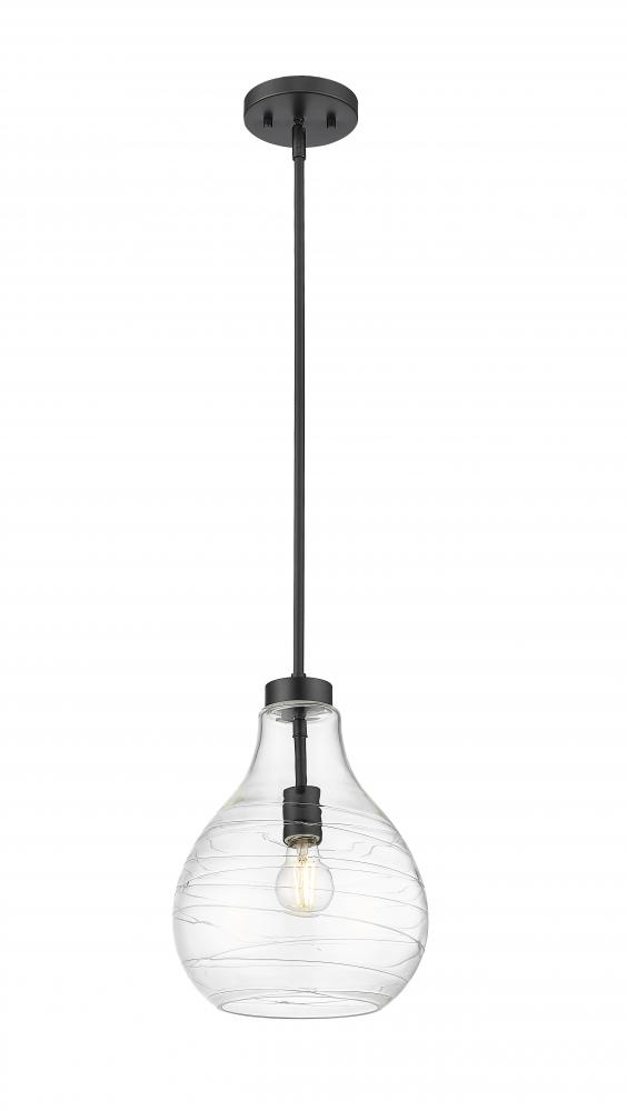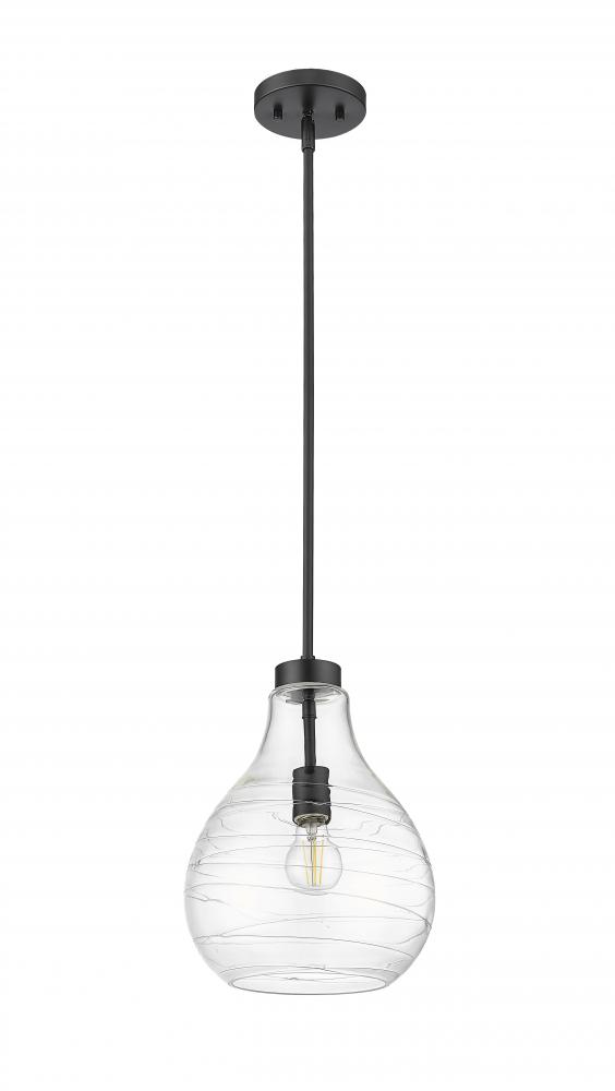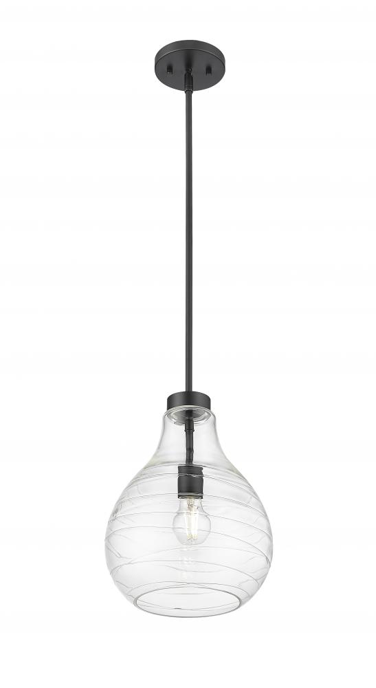 Artisanal ribboning highlights curvy clear glass to create a statement-making look and feel for a modern one-light pendant. Bold in matte black, it boasts a crisp, clean silhouette that brims with character as the dimensional shade refracts light to reduce glare and create an inviting ambiance in your home.
