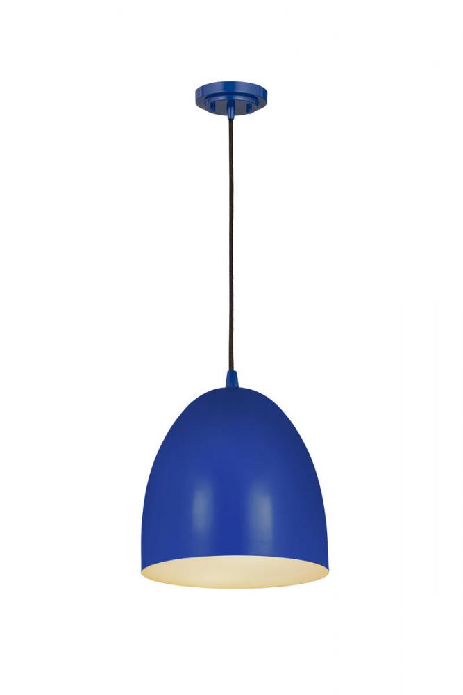 Solve lighting challenges in compact spaces with a cheeky, Mid-Century Modern style fixture that becomes part of a design scheme. The Z Studio Dome pendant brings targeted lighting to casual nooks and reading spaces, bedrooms and kitchens. With a farmhouse feel, this versatile dome-style pendant offers a bright blue finish iron shade and matching canopy, as a charming braided black cord adds finishing touches.