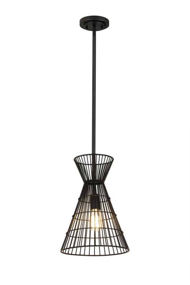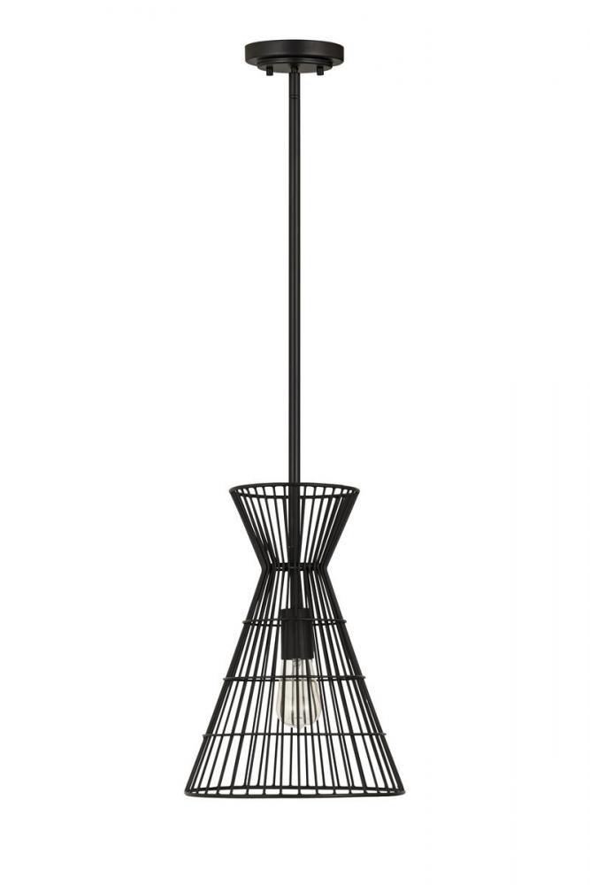 Indulge in a love of industrial aesthetics with a light fixture styled to deliver casual, easygoing personality in a targeted space. This mini-pendant from the Alito collection offers a bold matte black finish iron frame creating a geometric silhouette and a cage-style wire design. A matching down rod and canopy offer palette consistency and an energy-inducing look to punctuate any space.