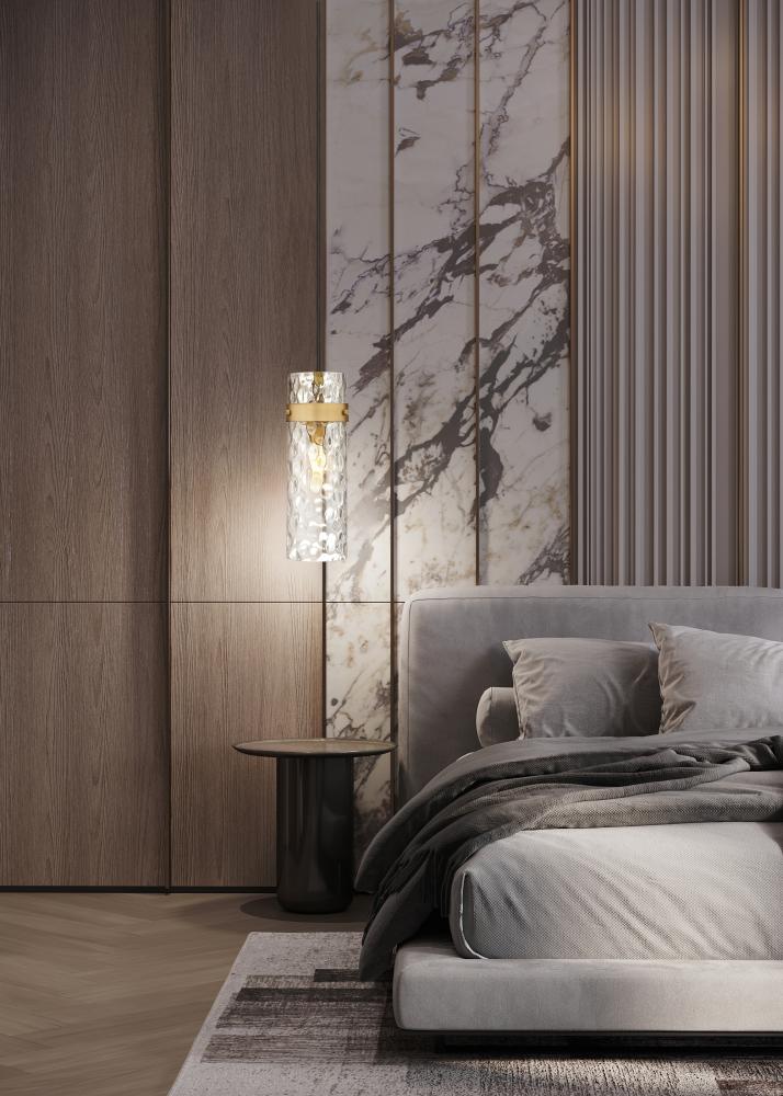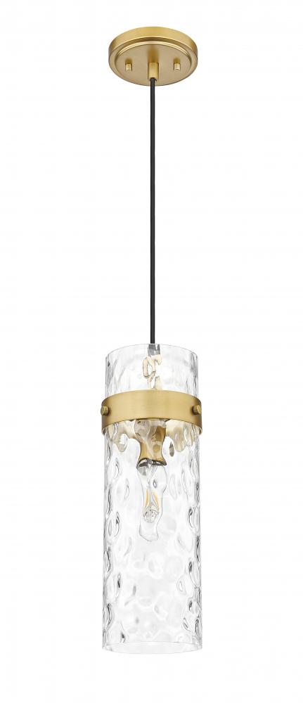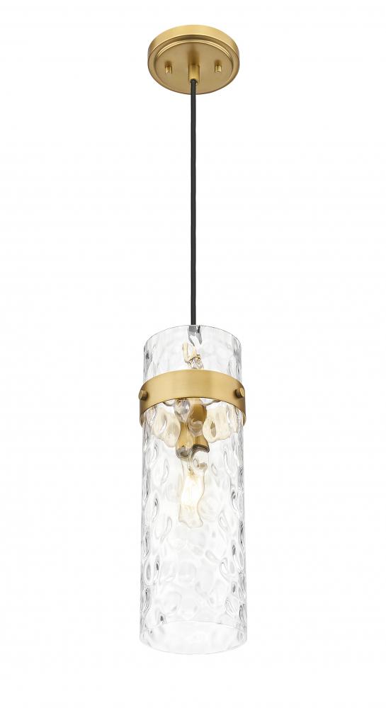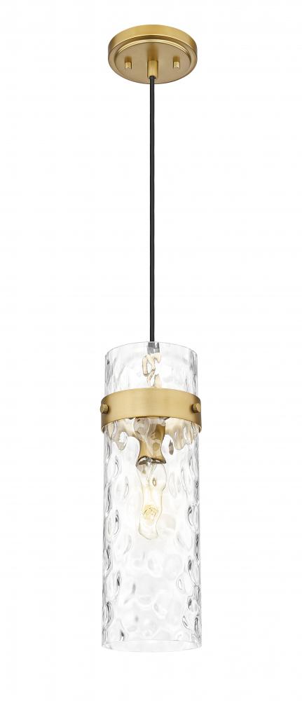Rich and refined, this modern one-light pendant sets a sophisticated tone with its rubbed brass finish. Sparkling with warmth, the finish adds luxe flair to clear water glass that adds rippling movement and fluidity. Alone or in multiples, this is a simply stunning pendant.