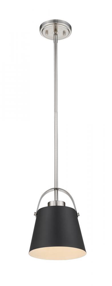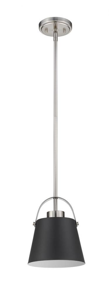 Incorporate design-forward illumination into a decadent contemporary d?cor scheme with this gorgeous one-light mini-pendant. Bring targeted lighting to a compact nook or reading space with a sleek fixture fashioned from Matte Black and Brushed Nickel metal, with a classic angled shade.