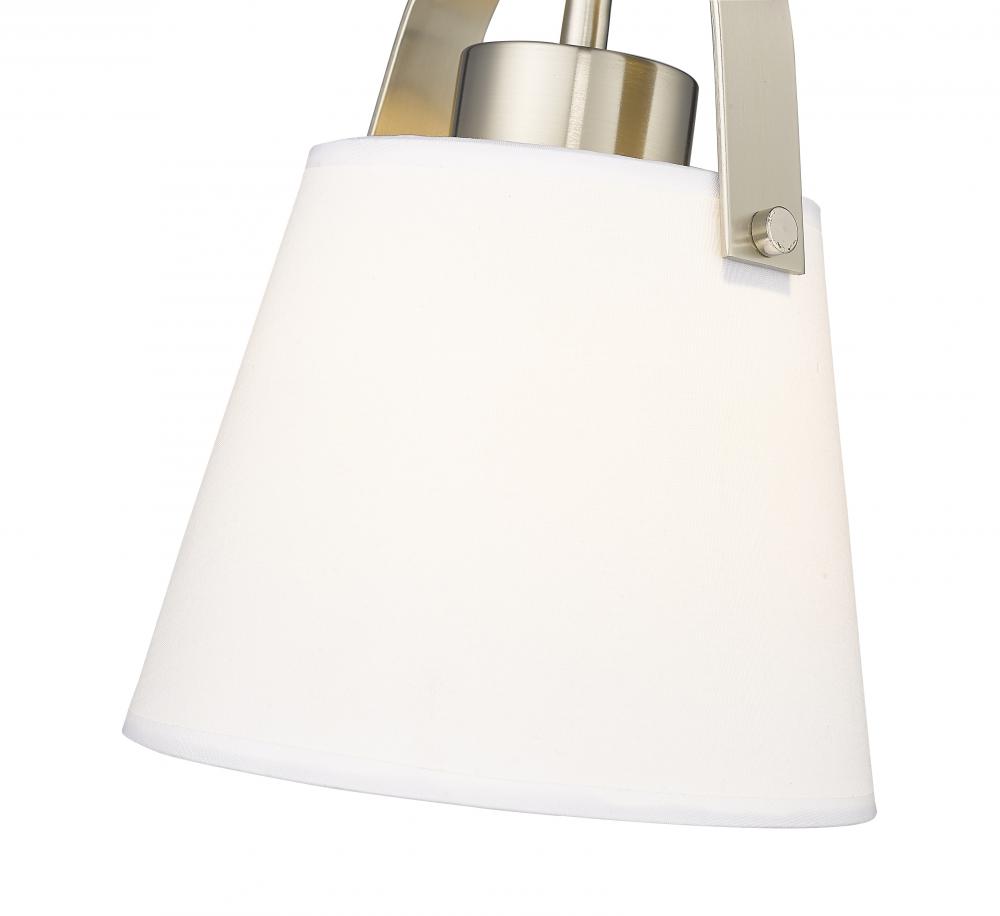 Choose a fresh blend of coastal, farmhouse, and industrial motifs in a light fixture with versatility. From the Z-Studio comes a delightful source of ambient lighting perfect for a dining area, main living space, or bedroom. Carefully designed with a brushed nickel finish metal frame and soft ivory fabric conical shade, this one-light pendant reflects the easy-living aesthetic you?re looking for.