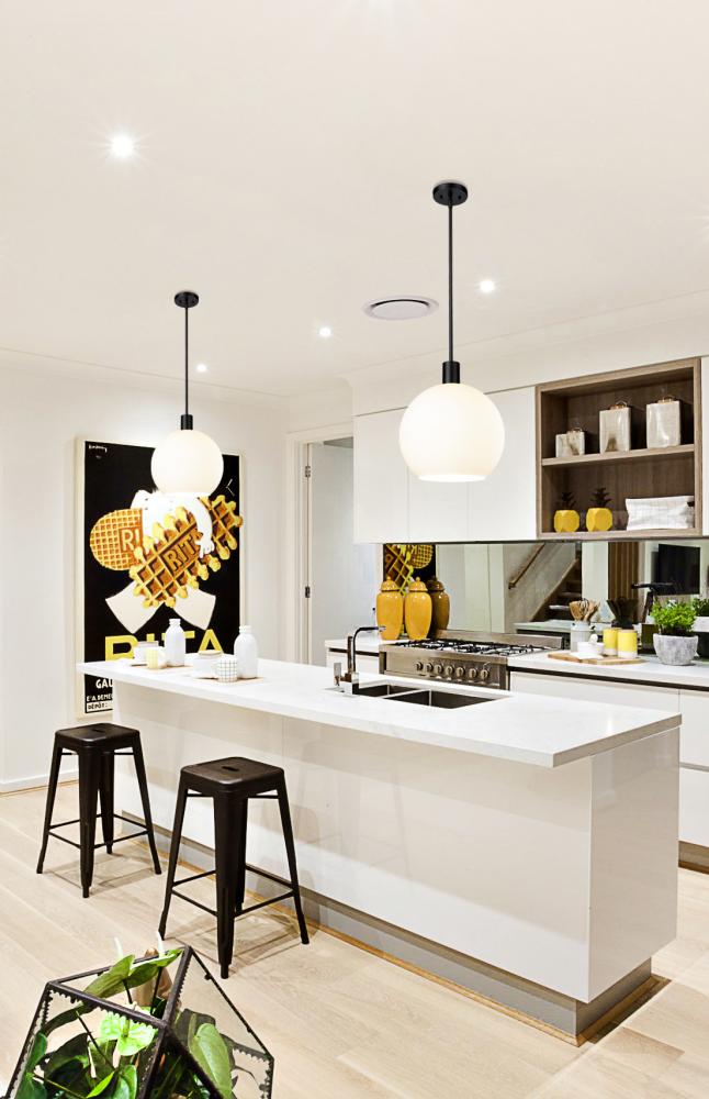 Create a Mid-Century Modern flair to kitchen islands, countertops and breakfast nooks with this mesmerizing sleek contemporary pendant. Designed with a brilliant white glass globe shade, this elegant pendant brightens interiors and lends a gorgeous glowing ambiance throughout the space. The soothing orb-like pendant also features a slender matte black steel rod and matching flush plate mount, offering a minimalist aesthetic and versatility to all types of home interiors.