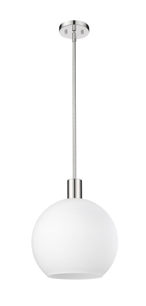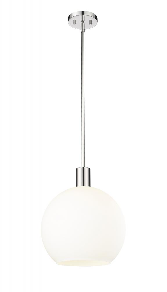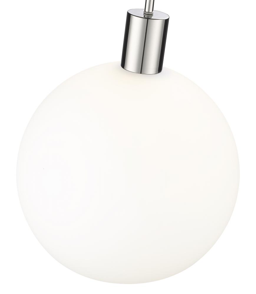 Create a Mid-Century Modern flair to kitchen islands, countertops and breakfast nooks with this mesmerizing sleek contemporary pendant. Designed with a brilliant white glass globe shade, this elegant pendant brightens interiors and lends a gorgeous glowing ambiance throughout the space. The soothing orb-like pendant also features a slender shiny polished nickel steel rod and matching flush plate mount, offering a minimalist aesthetic and versatility to all types of home interiors.