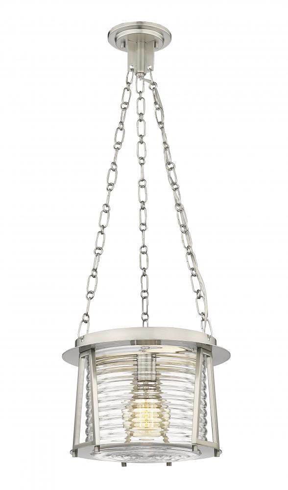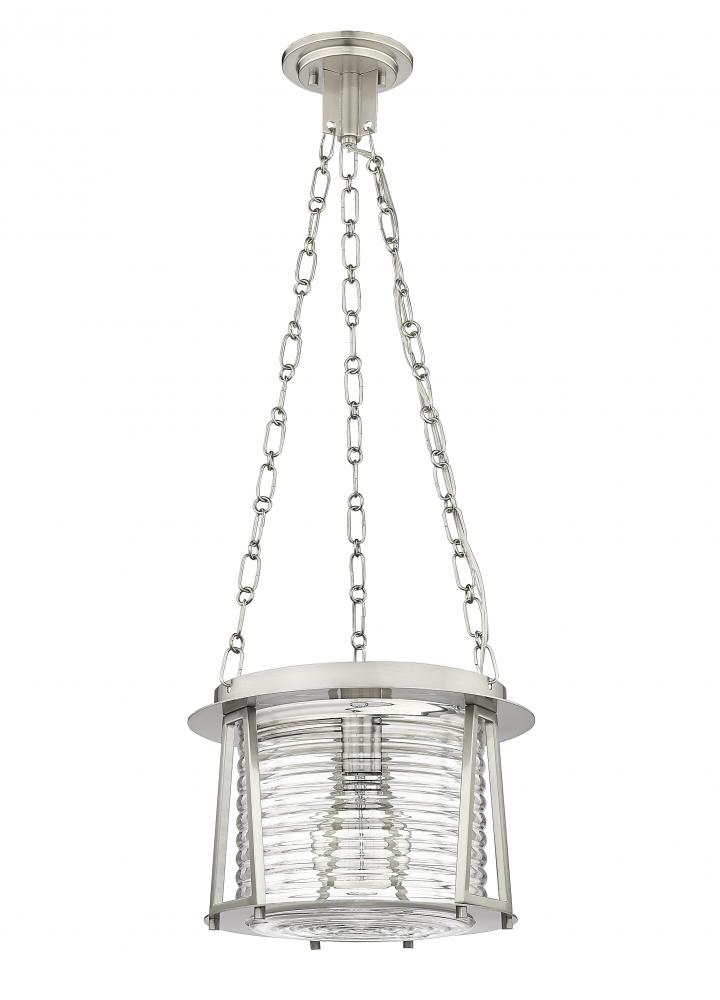 A specialist artistic aesthetic turns easily into a sleek light fixture suited to a themed space as this one-light pendant from the Cape Harbor pendant delivers a purposeful nod to nautical flavor. Embrace complex design elements that blend brushed nickel finish steel with alluring water-hammered glass that delivers sheer elegance. Coastal-inspired spaces benefit from this charming artisanal pendant offering an abundance of personality.
