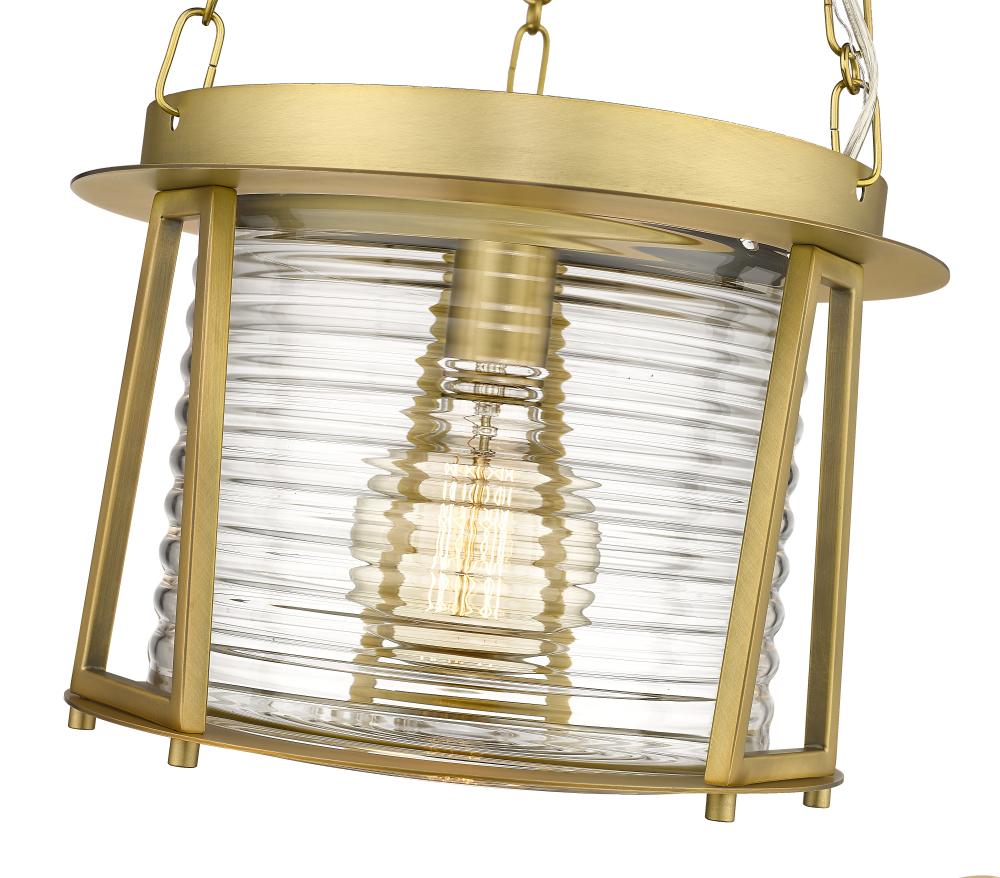Elevating a glam look with nautical personality, this one-light pendant from the Cape Harbor collection becomes a fast favorite. Embrace complex style elements that blend rubbed brass finish steel with alluring water-hammered glass to repurpose a maritime motif. Coastal-inspired spaces benefit from this charming artisanal pendant offering an abundance of personality.
