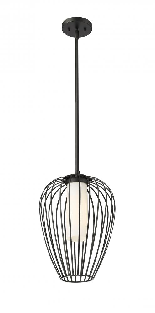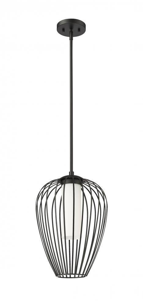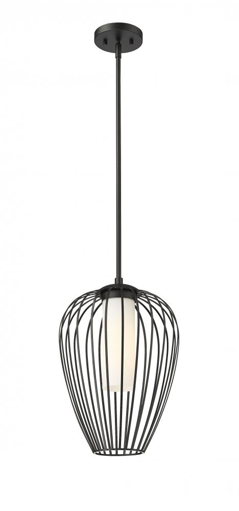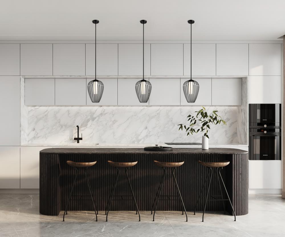 A charming modern tulip silhouette creates a sleek look and feel for a modern one-light pendant. Slender, curved spokes feature a matte black finish, while white opal glass within ensures soft, diffused illumination perfect for a bedroom or living area. Its a charming addition over a kitchen island.