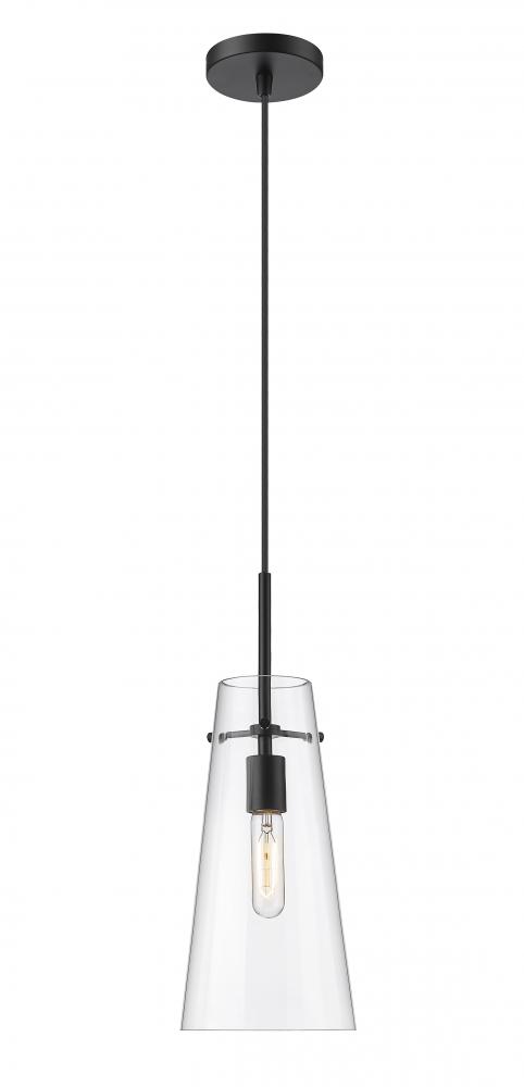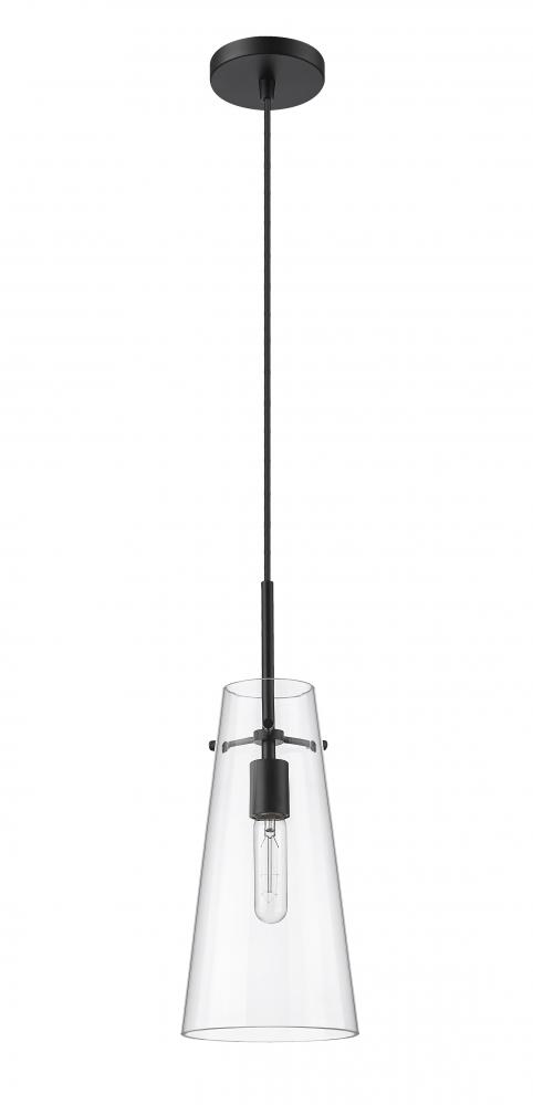 An elongated cone of clear glass sets the tone for a modern one-light pendant. Infused with minimalist elegance, it showcases a simple, sleek housing and suspension for a crisp, clean look and feel in your kitchen, living room or powder room. A stately matte black finish is crisp and timeless, setting the tone for surrounding decor.