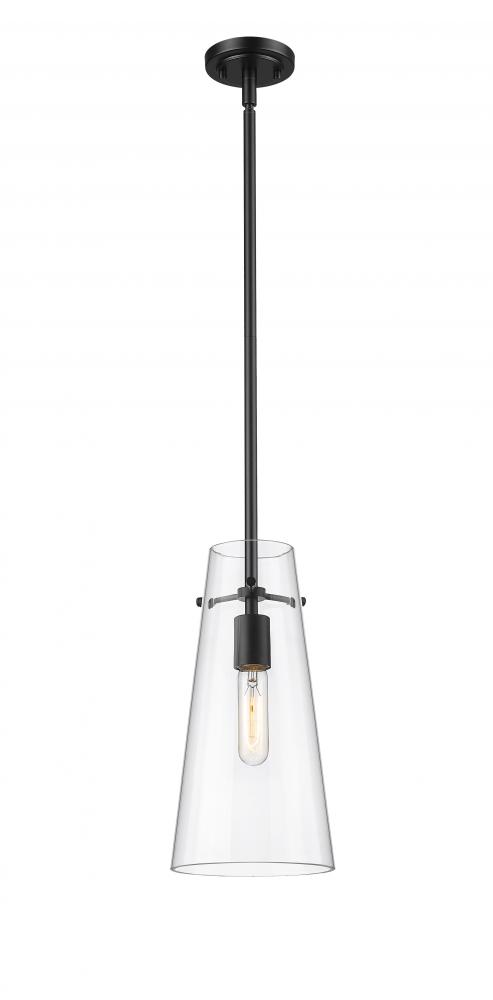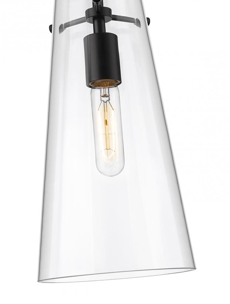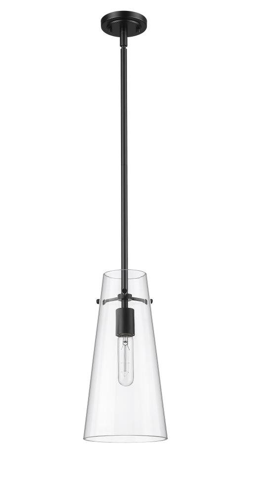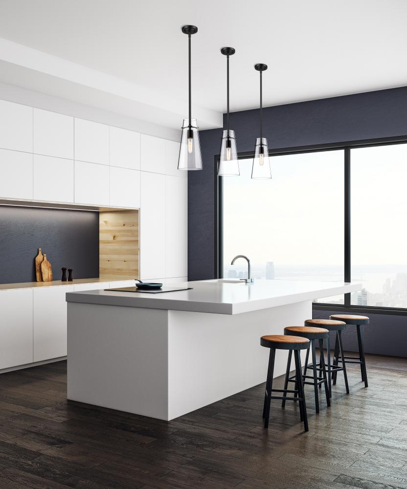 Minimalist design credentials are on full display in a modern one-light pendant. Pairing a cone of clear glass with a simple housing and suspension, the pendant is a gorgeous choice with understated elegance. Matte black finish is a sleek touch, offering a refined look and feel in your kitchen or living area.