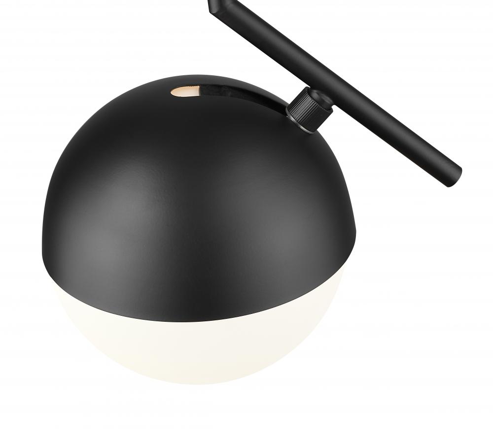 Encourage a chic ambiance in your modern space with this mid-century modern one-light pendant. Designed to impress, it stands out with a matte black finish over its angular arm and suspension, creating a decorative effect in any setting. An orb of opal glass diffuses illumination to create an inviting ambiance.