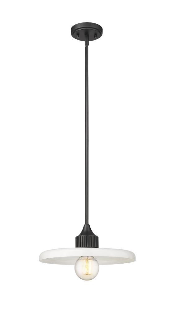 A disc of smooth, glossy opal glass diffuses the illumination from this modern one-light pendant. Dramatic in any room, the fixture pairs a crisp matte black finish with a simple, clean silhouette that promises bright illumination in a stylish but understated profile.