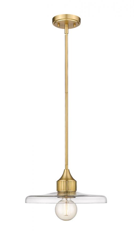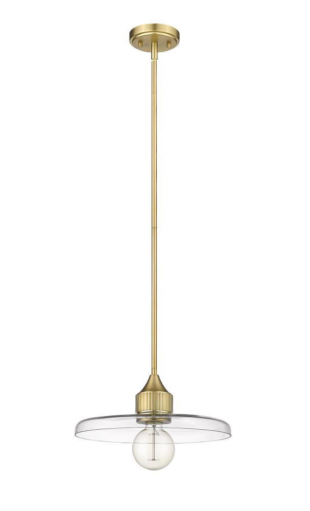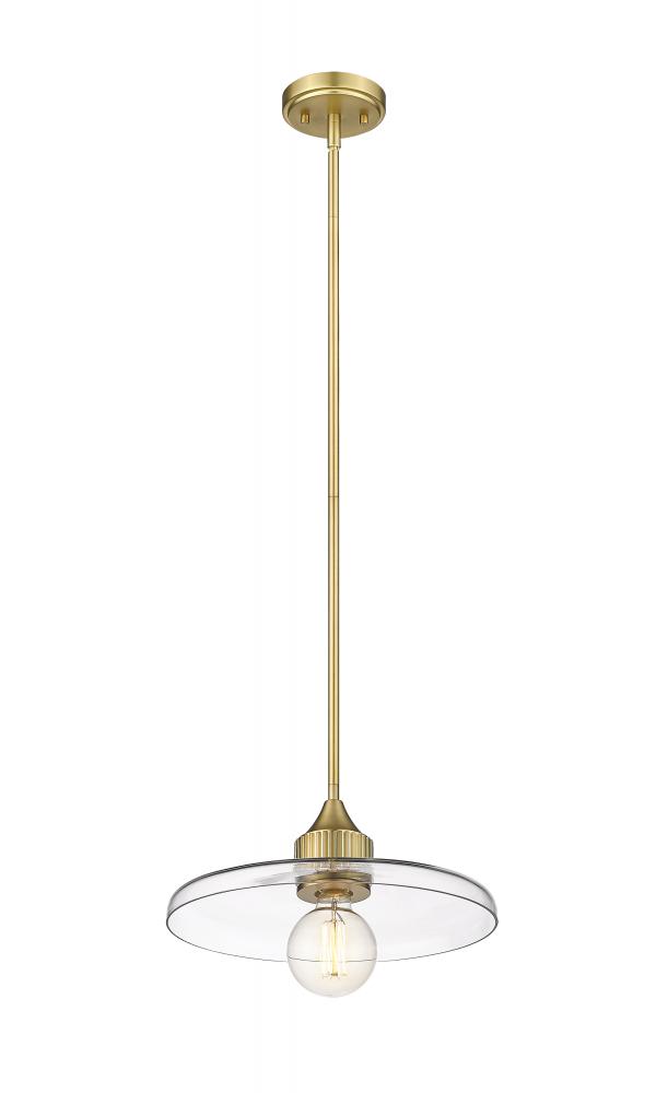 A disc of smooth, clear glass ensures bright illumination from this modern one-light pendant from the Paloma collection. Adding an element of nostalgia and craftsmanship in any room, the fixture pairs a warm olde brass finish with a simple, clean silhouette that promises bright illumination in a stylish but understated profile.