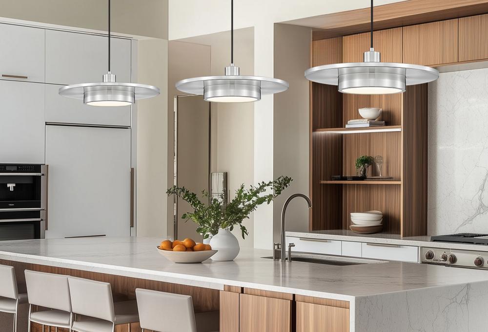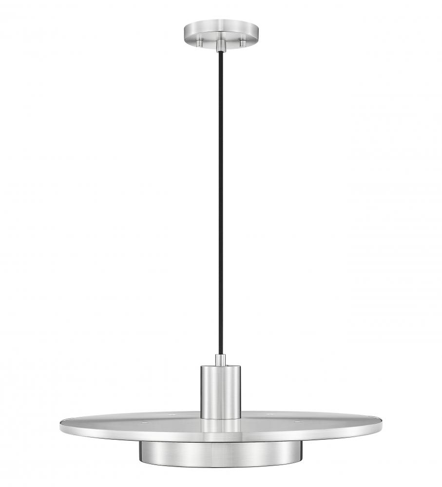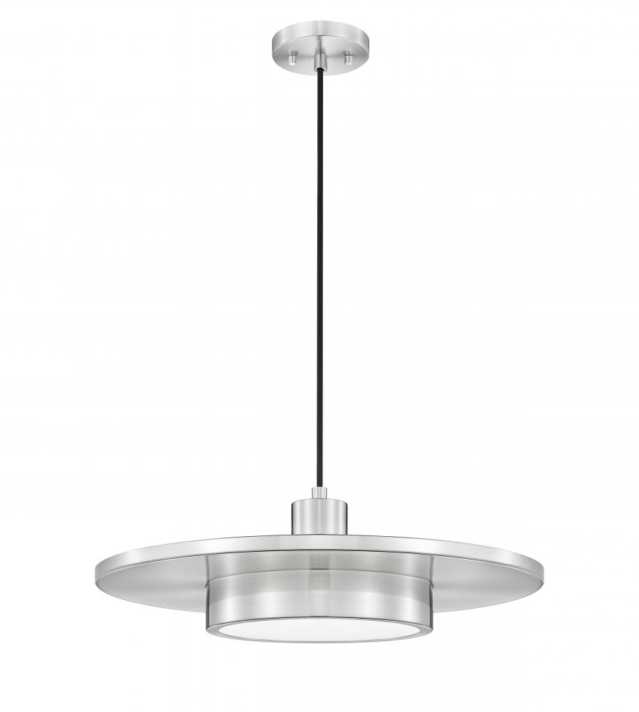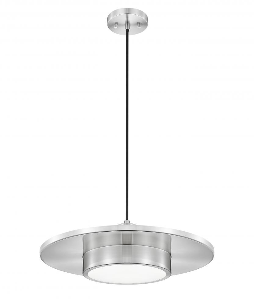 Interpreted as both modern and retro, the mixed motif of this one-light pendant delivers a stylish look for living rooms, dining rooms, and entryways. Cylinder elements with a center disk shape in cool brushed nickel finish steel construction, combined with a bold black cord adding refinement. Enjoy mood lighting with varying levels through dimmable LED light that emits through a frosted acrylic shade.