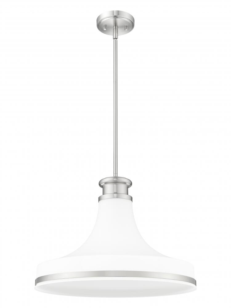 Indulge in a love of deco and vintage style with an updated design, as this single-light pendant reflects an extraordinary aesthetic. Shapely and alluring, its matte opal glass shade rests in brushed nickel steel framing with just the right accents, perfect for illuminating a dining space, entryway, or bedroom. Dimming features make it possible to create mood lighting or varying levels of illumination for meeting particular functions.