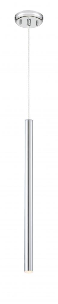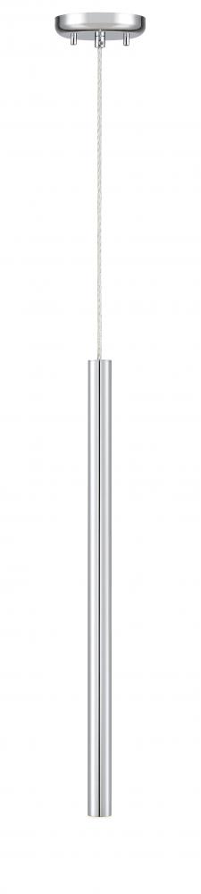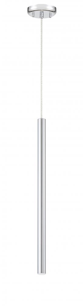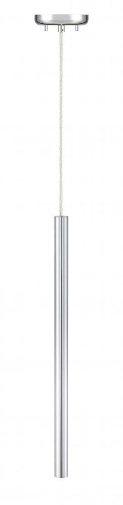 Complete with a clean silhouette, this metal hanging pendant light is full of modern details. The elongated frame features a bright chrome finish and dimmable lighting capabilities.