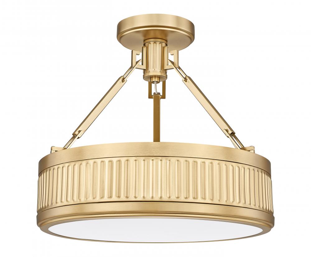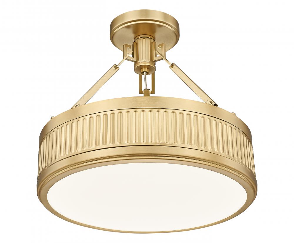 Bring impeccable texture and a hefty dose of mid-century charm to your homes bedroom or den with this modern one-light semi-flush mount ceiling light. Perfect for compact spaces, it offers plenty of dimension with fluted bands and a rich modern gold finish. The shallow drum profile casts bright, diffused illumination with a Z-Lite EZ change LED module that offers dimming capabilities, light color selectability and energy efficiency.