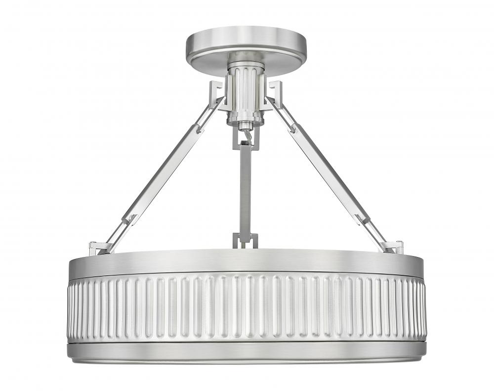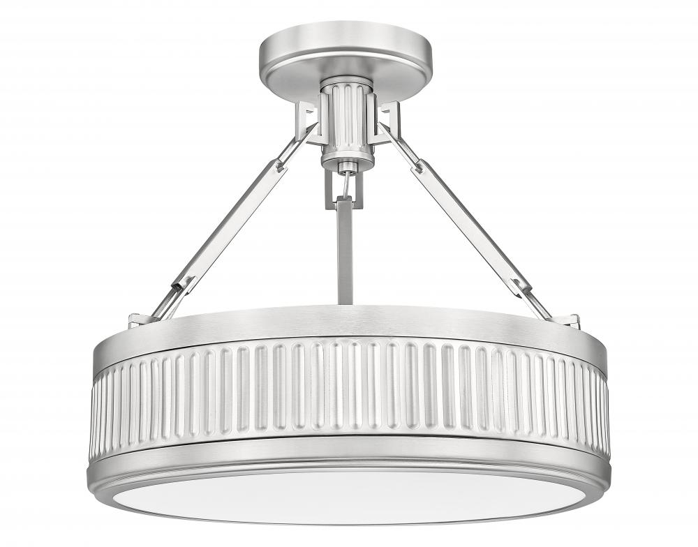 Fluted bands bring the perfect dose of personality and texture to this mid-century modern one-light semi-flush mount ceiling light. Perfect for a bedroom or breakfast nook, it offers bright style with a satin nickel finish and opaque diffuser for excellent illumination. This fixture is equipped with a Z-Lite EZ change LED module that offers energy efficiency, light color selectability, and dimming capabilities.