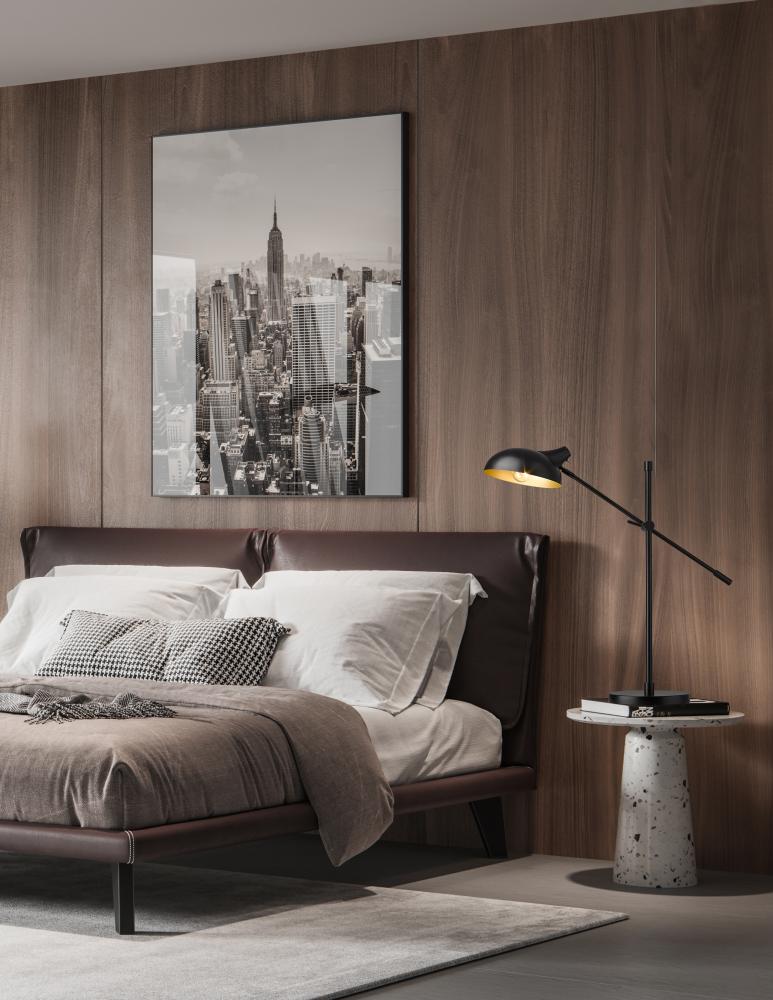 Angles and cool palettes make a difference in retro-influenced design, and this desk lamp from the Bellamy series delivers Mid-Century Modern inspired personality with a timeless vibe. Black steel construction features an industrial-like asymmetrical design and a classic nod to a past era. A shapely, ornate shade offers lush gold interior finishing, and stems from an adjustable bar offering customized lighting angles.