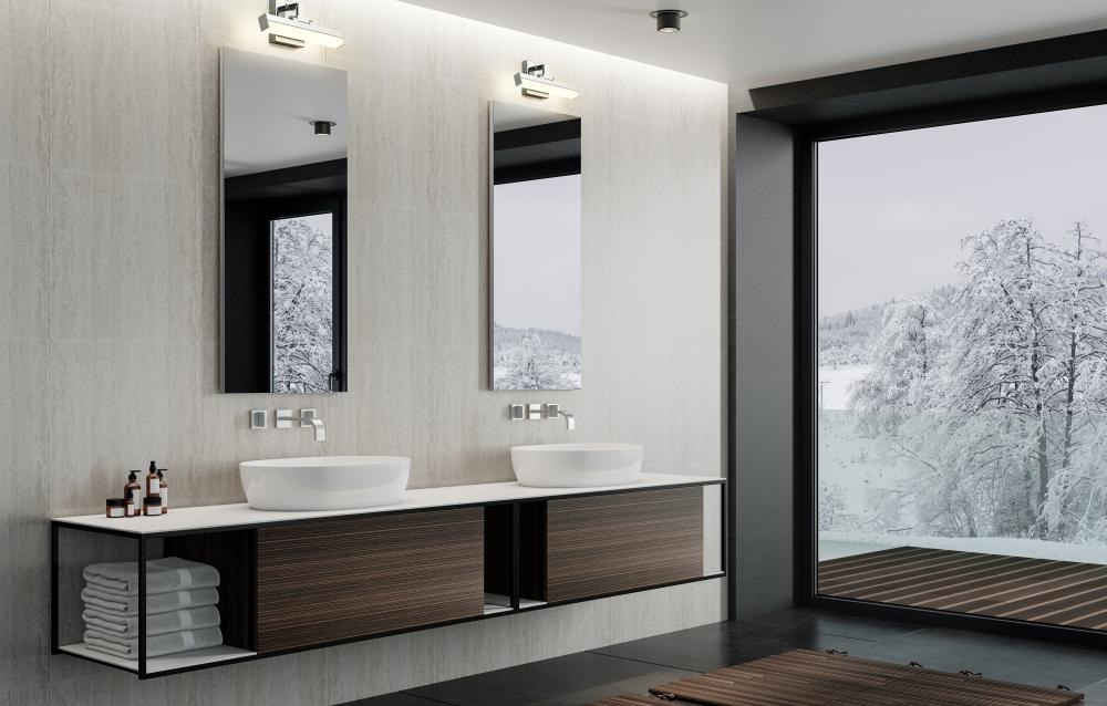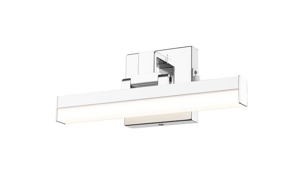 A bit of industrial influence is softened with sleek style in a one-light vanity bath light suited to both modern and transitional bath spaces. Sculptural elements maintain symmetry and clean lines in a fixture with a radiant chrome finish aluminum frame with a frosted plastic diffuser, emitting dimmable lighting with options for perfecting the level of ideal white color.