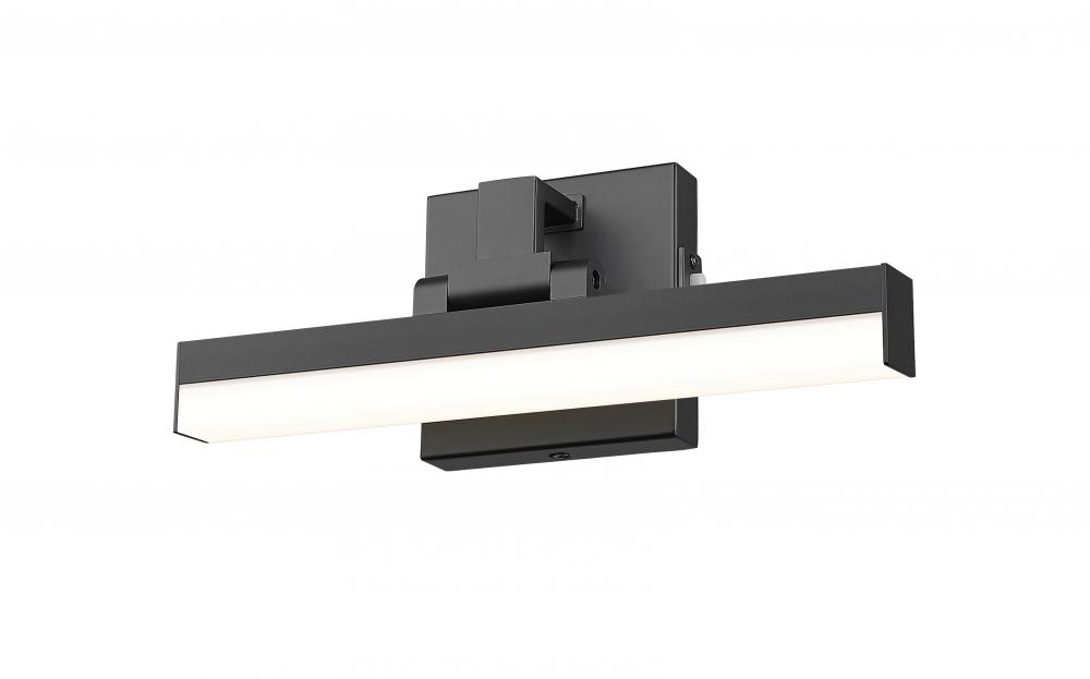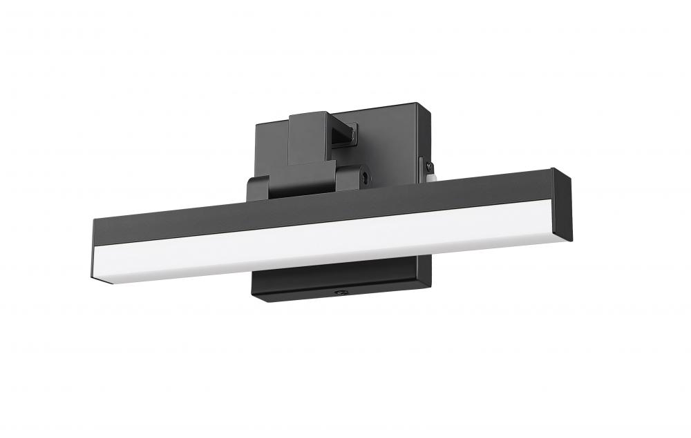 A bold contrast and clean design embellishes this one-light vanity light showcasing both modern and transitional motifs. Sculptural elements maintain symmetry and clean lines in a fixture fashioned of bold matte black finish aluminum with a frosted plastic diffuser, emitting dimmable lighting with options for perfecting the level of ideal white color.