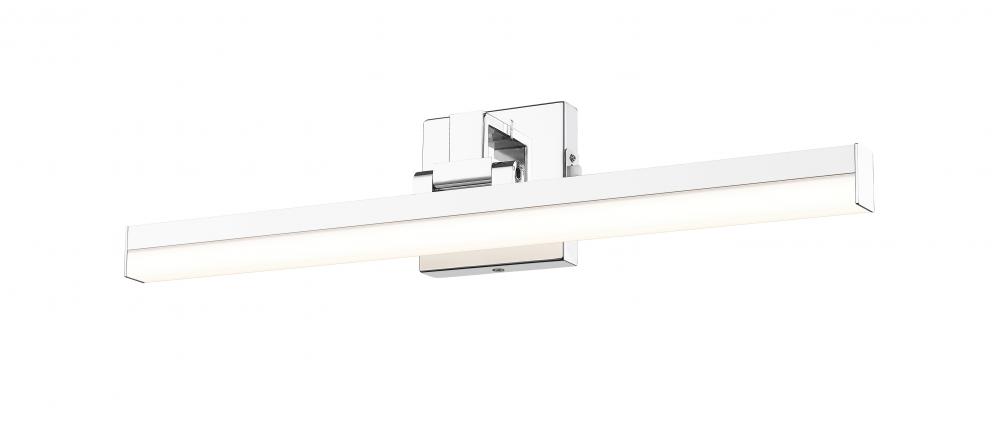 Accented with intriguing elements, this one-light vanity light offers a blend of industrial and modern styling. Sculptural elements maintain symmetry and clean lines in a fixture with a bright chrome finish aluminum frame with a frosted plastic diffuser, emitting dimmable lighting with options for perfecting the level of ideal white color.
