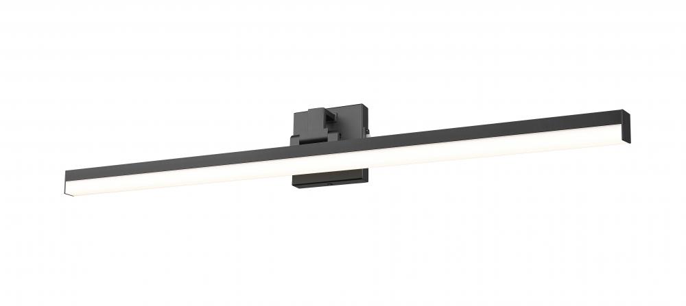 This elegant yet minimalist one-light vanity light bridges contemporary and industrial-transitional design motifs, ensuring versatility for updated bath spaces. Sculptural elements maintain symmetry and clean lines in a fixture fashioned of bold matte black finish aluminum with a frosted plastic diffuser, emitting dimmable lighting with options for perfecting the level of ideal white color.