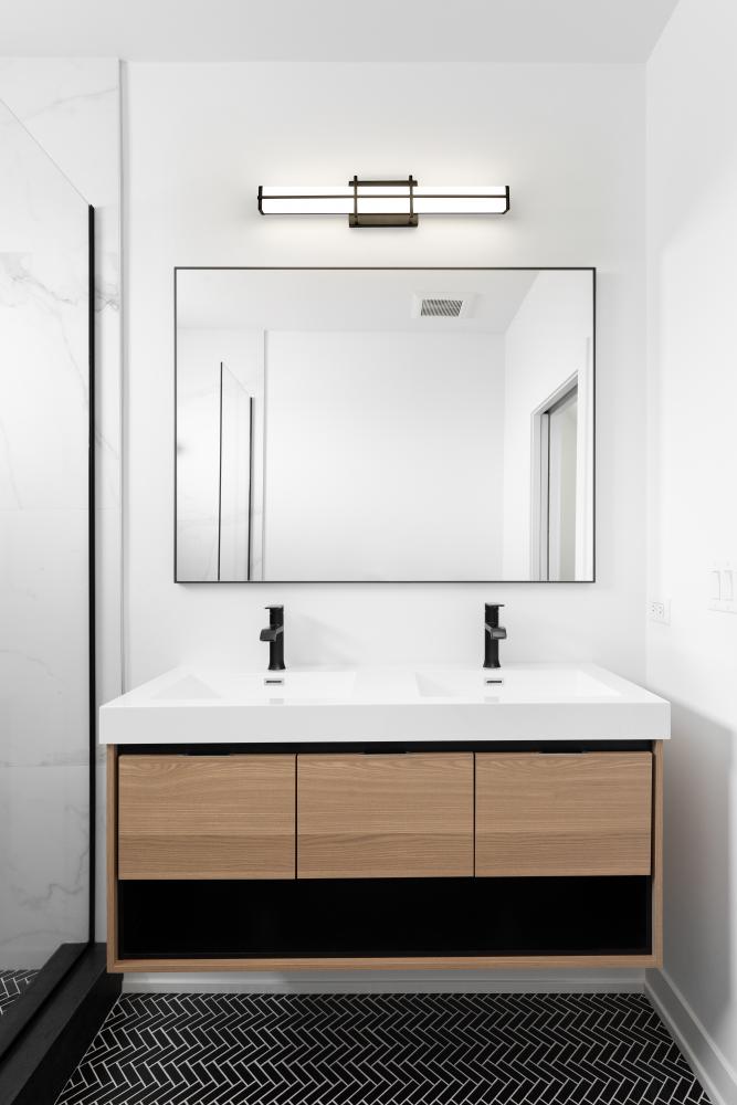 Brighten your modern vanity with the elegant simplicity of a dimmable LED bath light. Energy efficient, its got a selectable color temperature for custom illumination, and delivers a rich, stylish look with a linear bracket design in a deep matte black finish that pairs perfectly with a frosted diffuser to create bright, true lighting for all your daily grooming.