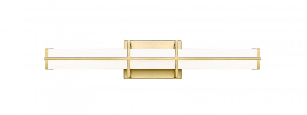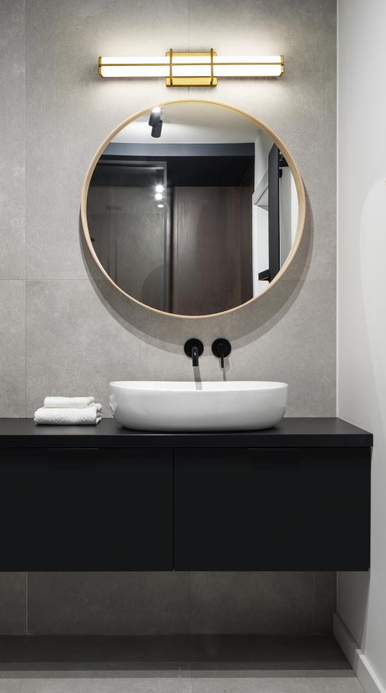 Brighten your modern vanity with the elegant simplicity of a dimmable LED bath light. Energy efficient, its got a selectable color temperature for custom illumination, and delivers a rich, stylish look with a linear bracket design in a warm modern gold finish that pairs perfectly with a frosted diffuser to create bright, true lighting for all your daily grooming.