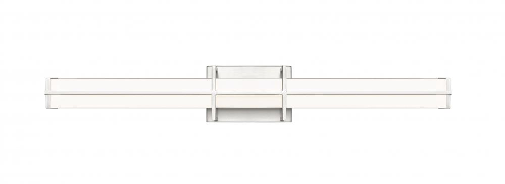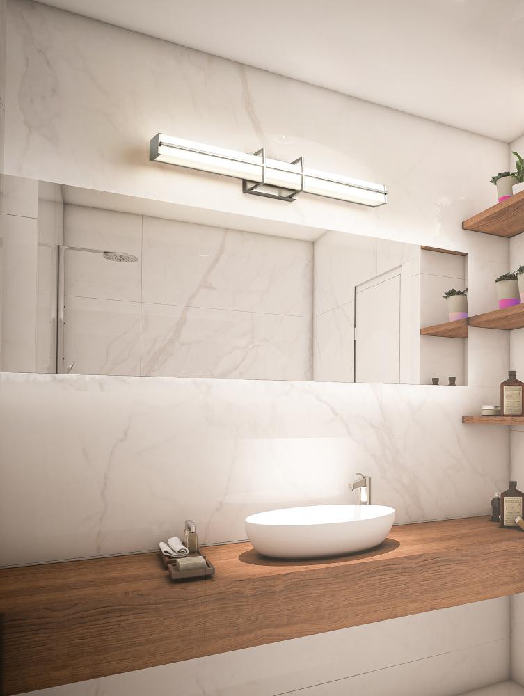 Simplicity sets the tone for the Harrison dimmable LED bath light. Its long, linear profile is perfect over your sink and counter, offering bright, even illumination with selectable color temperature to create the perfect ambiance for you. A rectangular diffuser is frosted for even illumination while a stylish bracket design sports a brushed nickel finish for a crisp, versatile look in your bathroom.