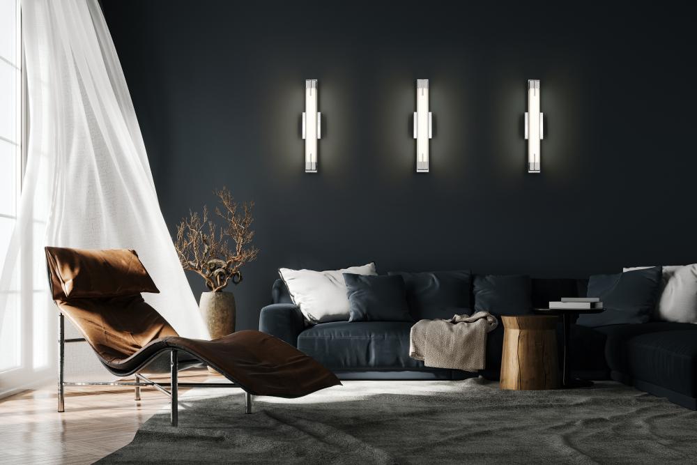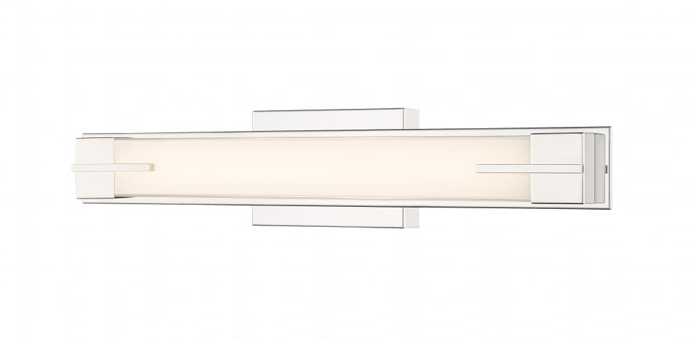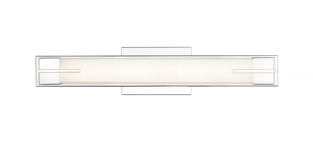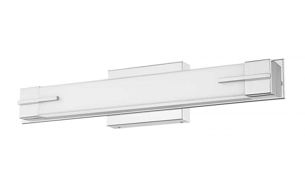 A bright gleaming chrome finishing creates a clean, refined look for a modern one-light LED vanity fixture. The linear design features steel end caps and bracket details, all complementing a silk white shade that offers diffused, inviting lighting to your bath.