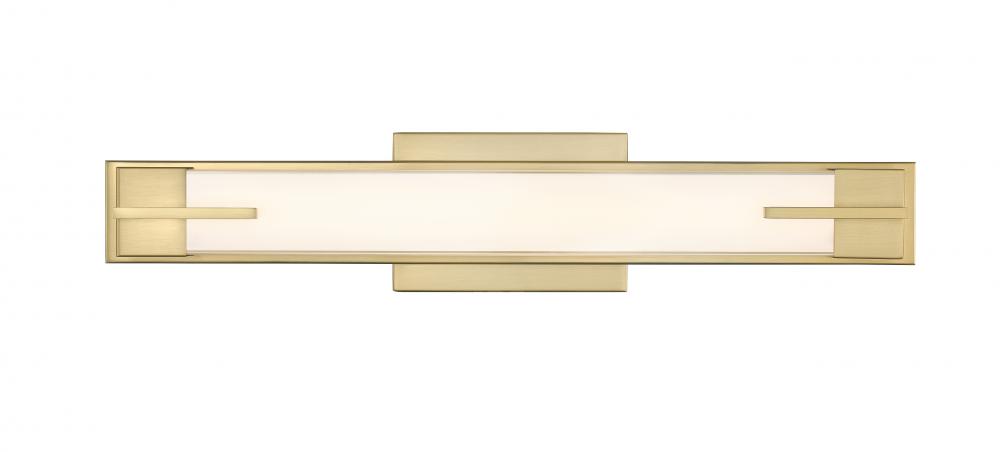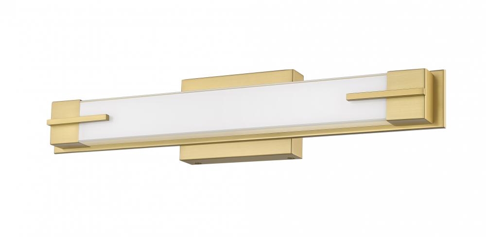 Youll love the sleek linear silhouette of a modern LED vanity fixture, perfect for a contemporary bath. A rectangular wall plate and bracket details highlight its modern gold finish frame, crafted from steel for excellent quality. A diffuser is crafted in silk white glass, casting bright, even illumination thats ideal for all your beauty and grooming needs.
