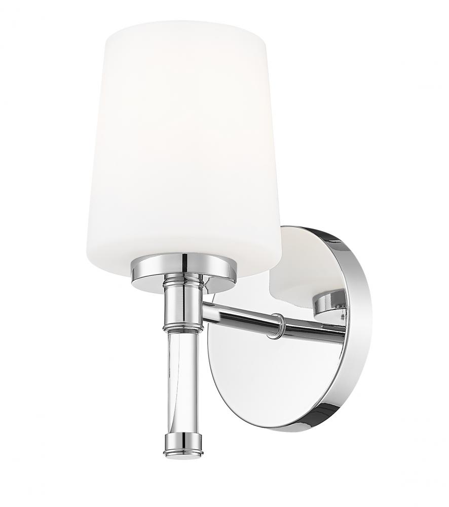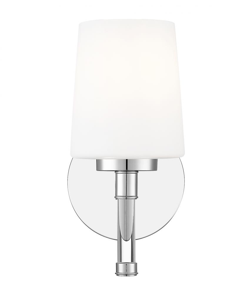 Bright metal brings mirror-like shine to this chrome one-light vanity light, bouncing reflections across faucets, hardware, and tile for a lively polished look. Place this streamlined fixture over a pedestal sink, a minimalist floating vanity, or even a desk, and it instantly introduces a hint of boutique-hotel glamour.