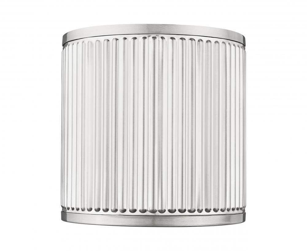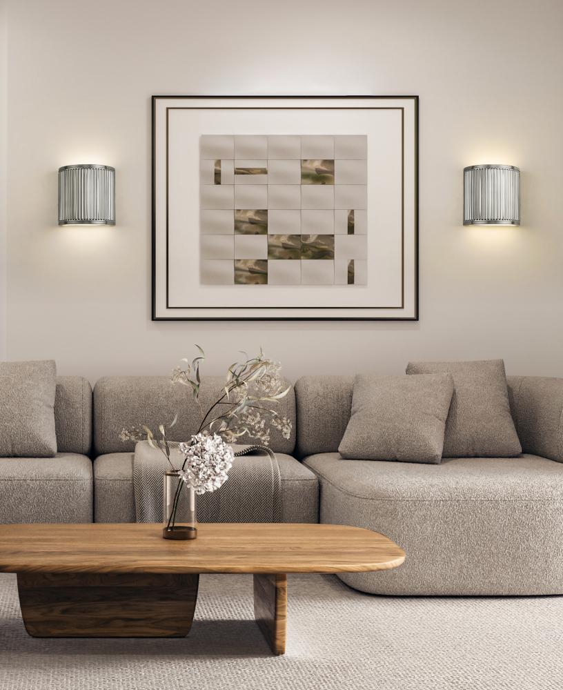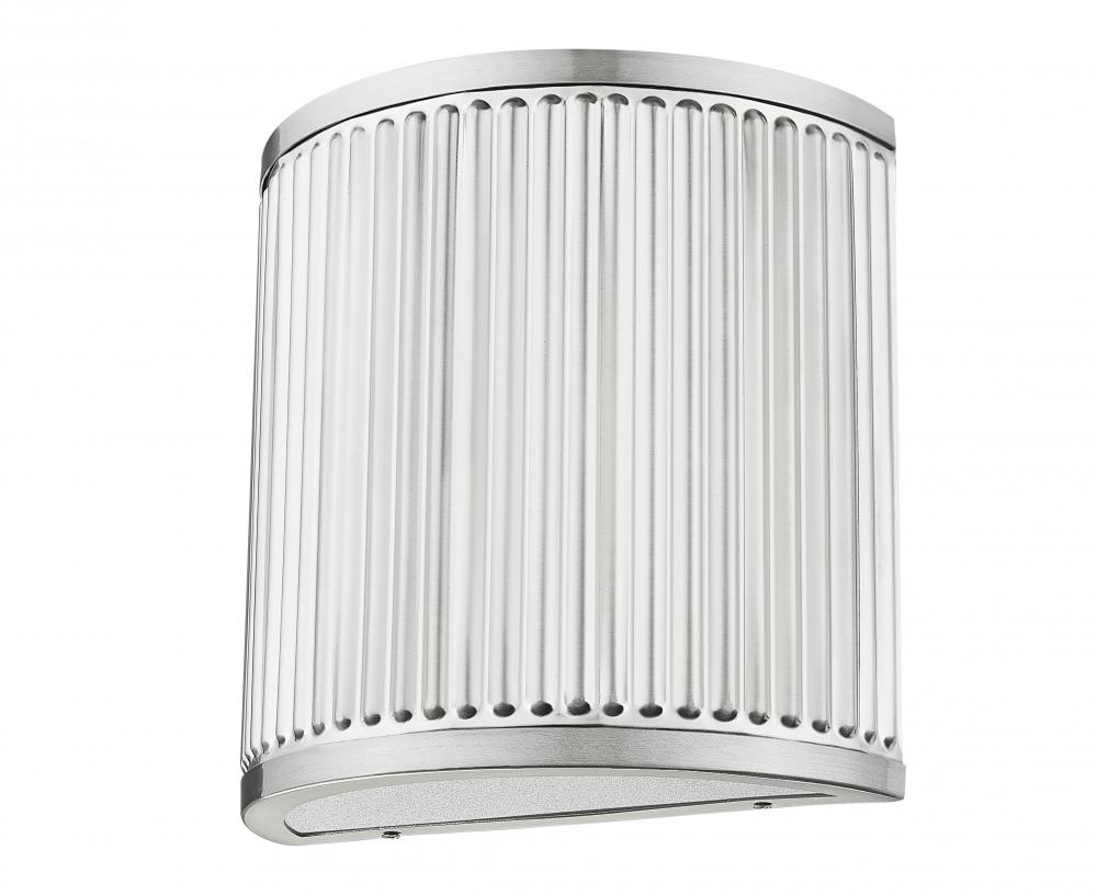 The delicacy of subtle ribbing creates engaging texture and movement for this modern one-light wall sconce. Its an LED fixture that offers energy efficiency and is dimmable, perfect for everything from entryways and halls to bedrooms and living areas. A brushed nickel finish completes the look with versatility.