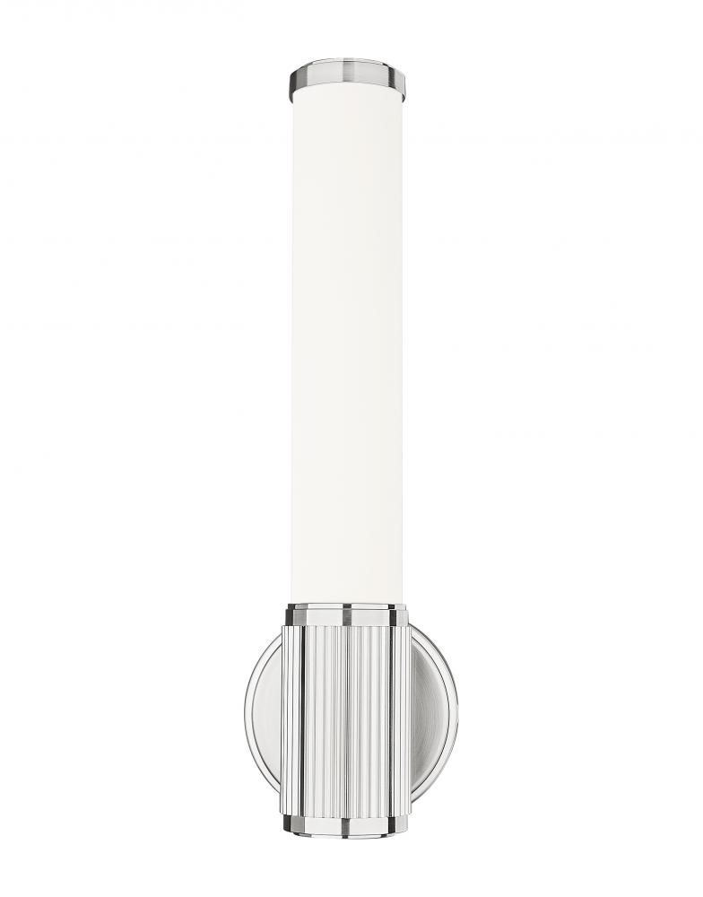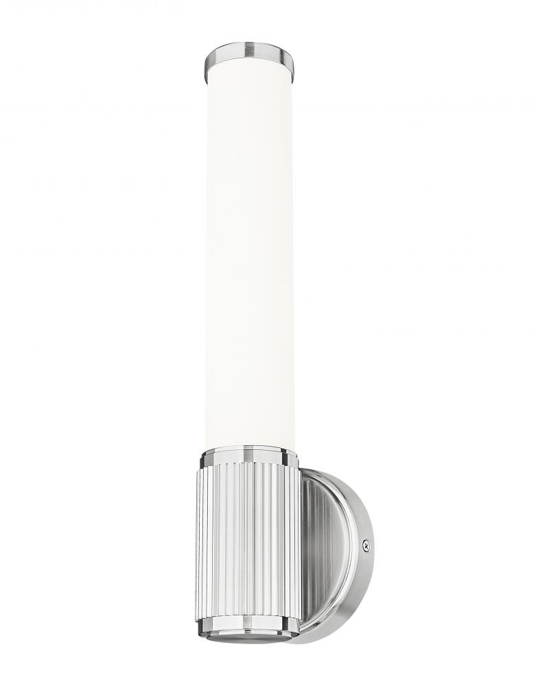 Fluting adds texture and depth to the simple steel cuff featured on this modern LED wall sconce with a brushed nickel finish. Designed to make a statement without overwhelming surrounding decor, it boasts a tall, slim silhouette with a cylinder of opal glass that serves as a chic shade, diffusing illumination for an inviting glow.