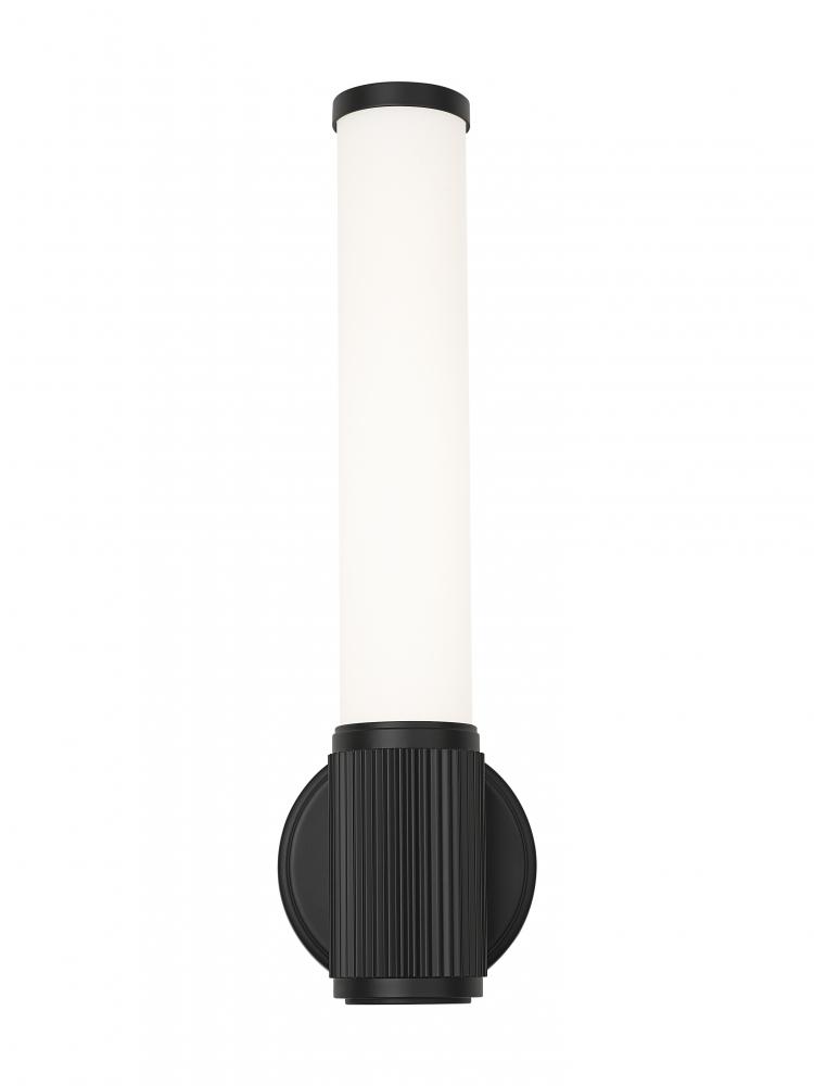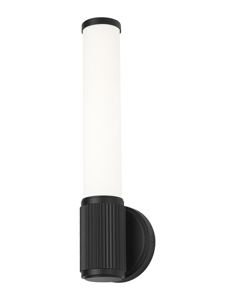 Decorated with a fluted steel cuff, this modern LED wall sconce adds a chic dose of texture to your space. It features a matte black finish that adds almost industrial flair, delivering charming character and dimensionality in your living space. A vertical silhouette is created with its opal glass shade, ensuring soft, inviting illumination.
