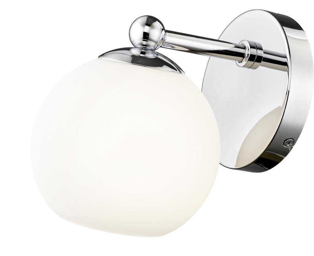 An easy elegance celebrates the iconic mix of glass and metal as this wall sconce from the Neoma collection adds both versatility and an updated aesthetic. Perfect for a contemporary bath space, hallway, or main living area, this sconce features a delicate opal glass open orb shade affixed to a charming wall mount and accents in gleaming chrome finish steel. A minimalist design brings notable character to an interior d?cor when this wall light ties together all elements in a modern setting.