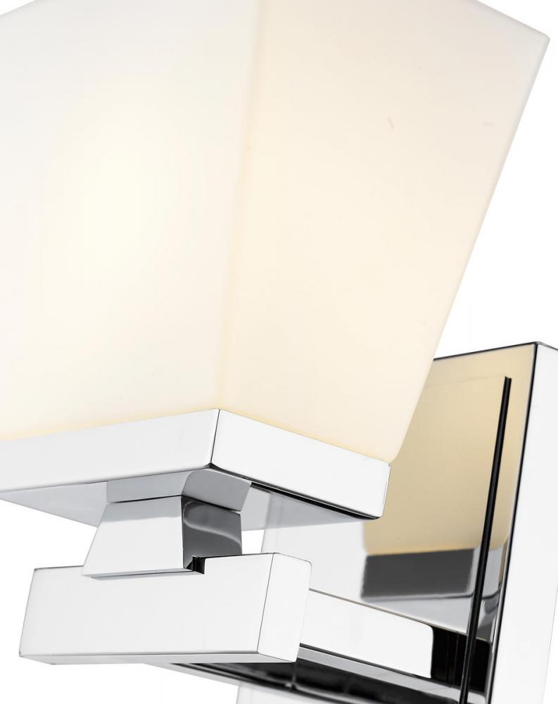 Invite modern farmhouse flair vibes into your home with a chrome wall sconce. This wall sconce showcases a glass shade in etched opal. The chrome finish contributes to the timeless appearance, while steel construction offers both style and aesthetic allure.