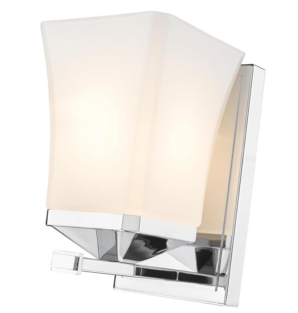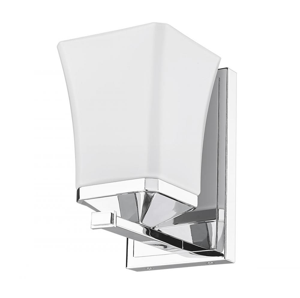 Provide a warm and inviting ambiance to your bathroom with a transitional style wall sconce. The sleek opal etched glass shade makes for ambient lighting. This wall sconce is constructed from steel with a chrome finish and a flared silhouette.