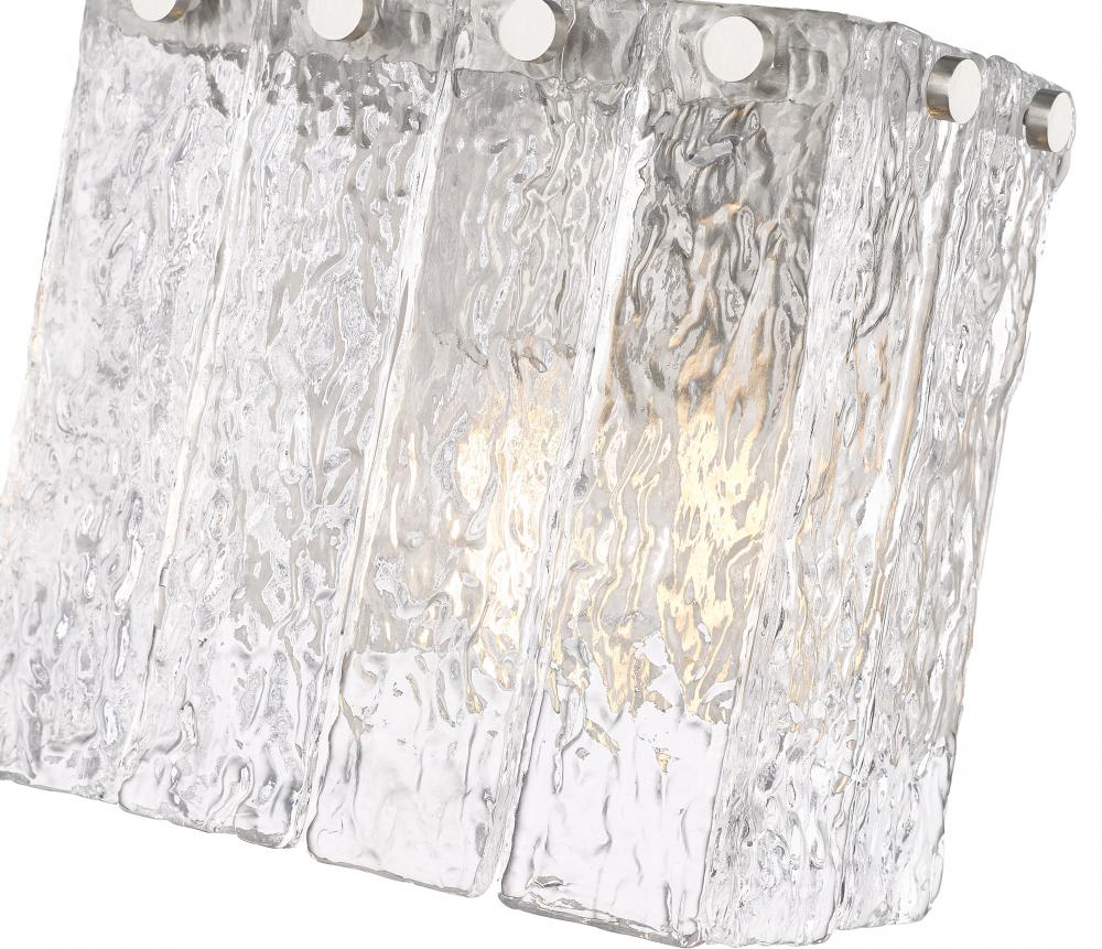 Textured glass panels bring icy elegance and modern flair to a one-light wall sconce thats perfect for contemporary and architectural interiors. It features a steel frame with a brushed nickel finish and is dimmable to achieve the perfect ambiance in bedrooms, bath, or living room.