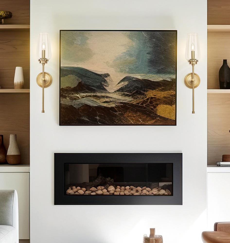 The depth of a stepped wall plate and the elegance of a tall, tapered glass bowl combine to perfection on this transitional one-light wall sconce. From powder room to foyer, its a graceful addition, pairing wine goblet inspirations with a rich, refined modern gold finish that adds wonderful warmth and elegance. Its slim stem adds gravitas to the overall design, supporting a single candelabra light that sparkles in any setting.