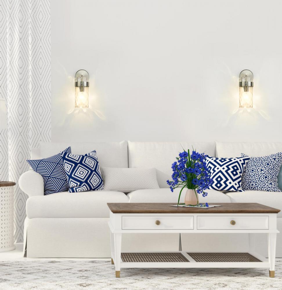 This wall sconce is designed to add a sense of modern elegance to any home. It is constructed from steel with a brushed nickel finish, while a cylinder glass shade in a ripple texture transforms the mood of the room.