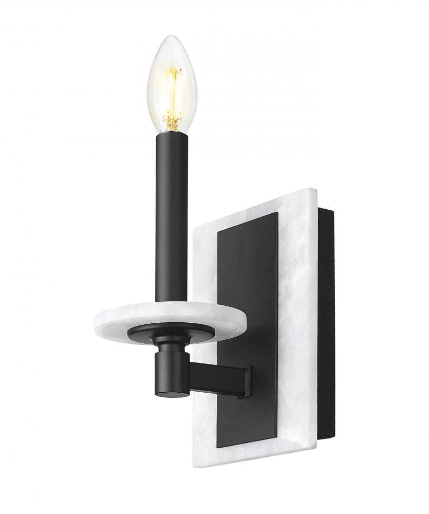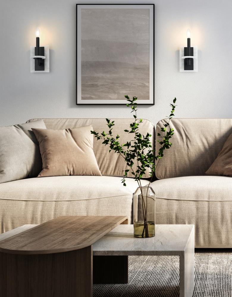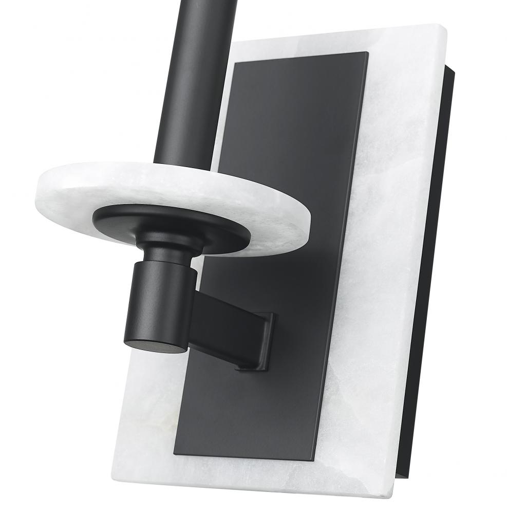Minimal in scale yet maximal in impact, this matte black sconce pairs effortlessly with its solid alabaster plate. The contrast is striking, the glow beautifully diffused. It is a sculptural accent that feels as thoughtful as it is functional.