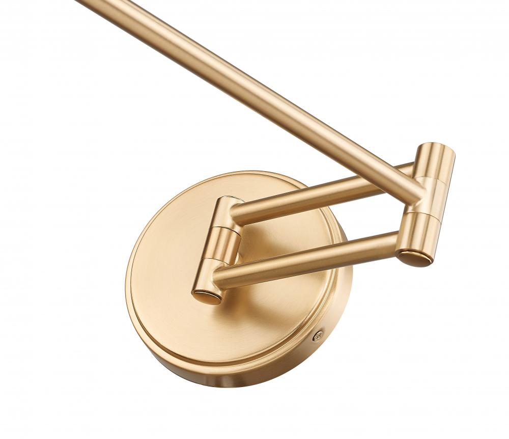 Functionality and beauty go hand-in-hand with this one-light wall sconce, a stylish fixture youll love for living rooms, bedrooms, and home office settings. Modern gold finish steel framing creates a linear silhouette with a long arm moving side to side, and an opal glass hood shade gently turning to even more flexible light direction. Soft, dimmable lighting creates options for light levels that suit current needs.