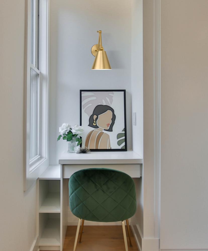 Gleaming modern gold finish metal brightens the studio-inspired design of a classic one-light wall sconce. Steel construction is true to its functional aesthetic, making the most of a wall-mounted light offering adjustable positioning of a cone shade. This fixture makes an excellent light for reading and task-mastering, as well as mood lighting ideal for a low-key setting. Install through hard-wiring or install cord-and-plug mounting to allow movement from space to space.